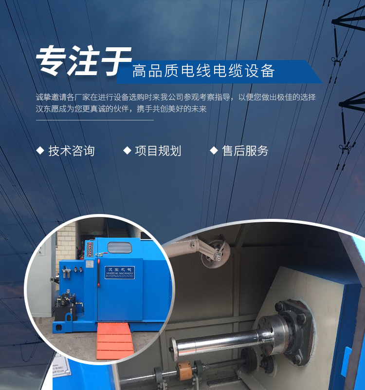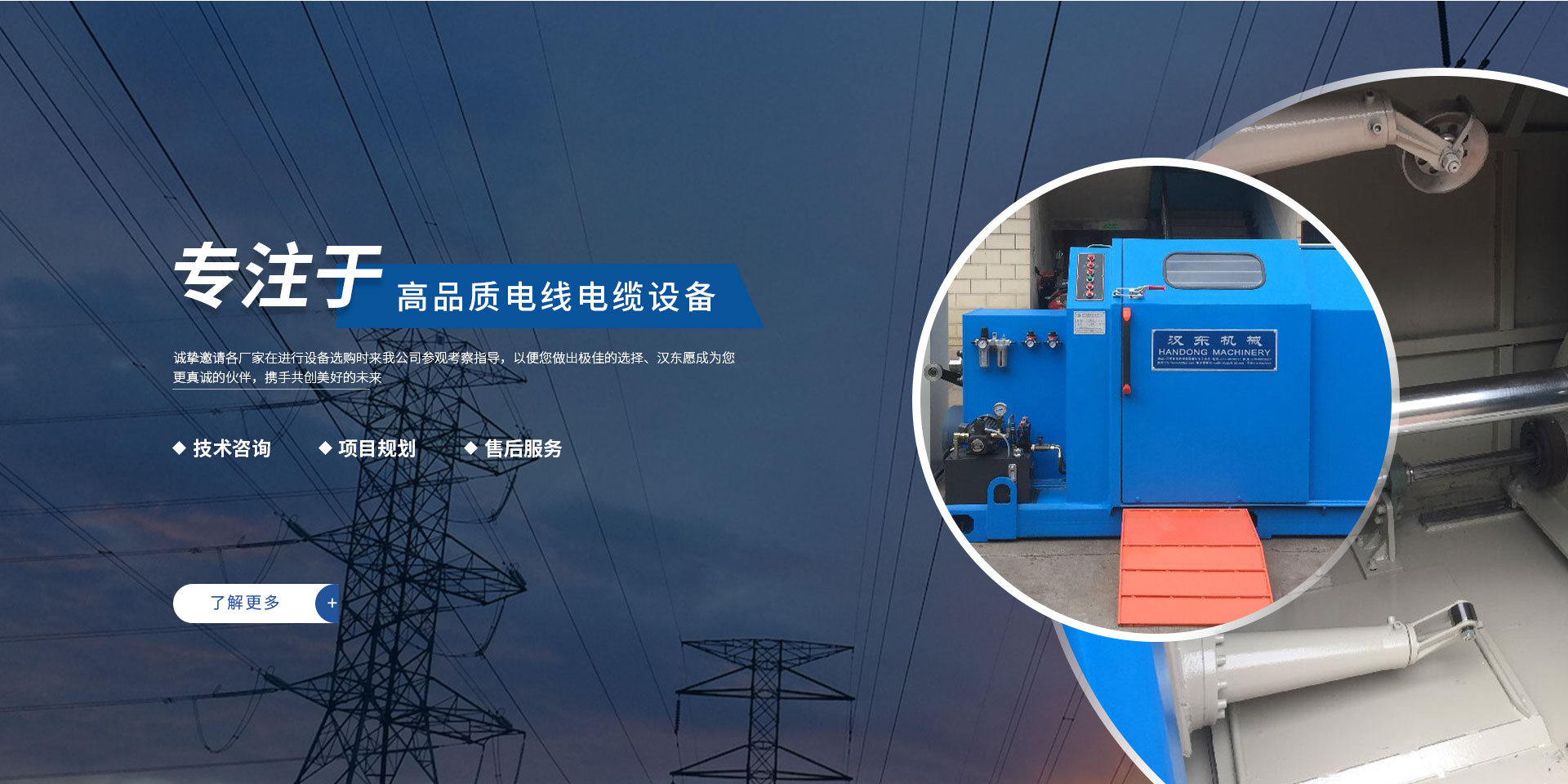 常州漢東機械始創(chuàng)于2006年,是集電線電纜機械設計、開發(fā)、制造、安裝、調試為一體化的高科技企業。本公司自開業以來,積極引進日本,歐美等國外電線電纜設備之先進技術,先后成功推出了達到行業先進水平的電線電纜設備,主要產品有擠出、繞包、束線、成纜等電線電纜固定設備。在提供系統設備的同時,還向客戶提供售前技術咨詢、項目規(guī)劃、以及售后服務。我公司本著“以人為本、科技先導、用戶為上”的宗旨,為客戶提供牢靠的產品與省心的服務。漢東愿成為您更真誠的伙伴,攜手共創(chuàng)美好的未來!